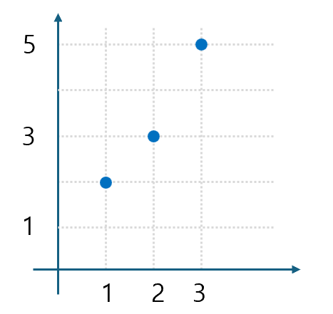 2차원 평면 위에 세 점 $(1, 2)$, $(2, 3)$, $(3, 5)$가 있다고 상상해 봅시다.