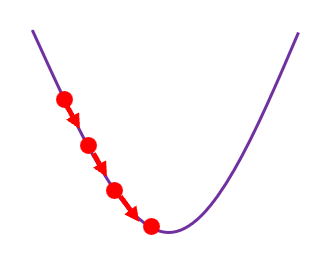 - 만약 기울기가 음수(-)라면? 값이 작아지는 중이므로, $w$를 키워야 바닥에 가까워집니다.