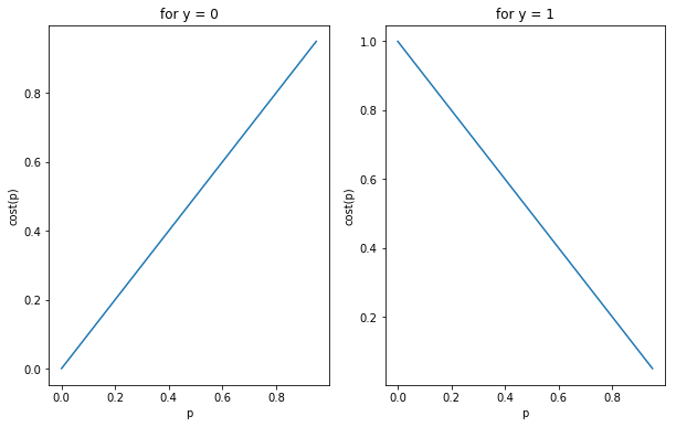 Cost(h_{ w }(x^{ (i) }),y^{ (i) }) &= \quad \quad -\log(h_w (x^{(i)})), \quad {for} \quad y^{(i)} = 1 \end{flalign}$$