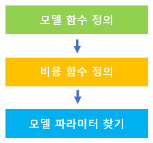 모델 학습 세 단계: 함수 정의, 비용 정의, 파라미터 찾기